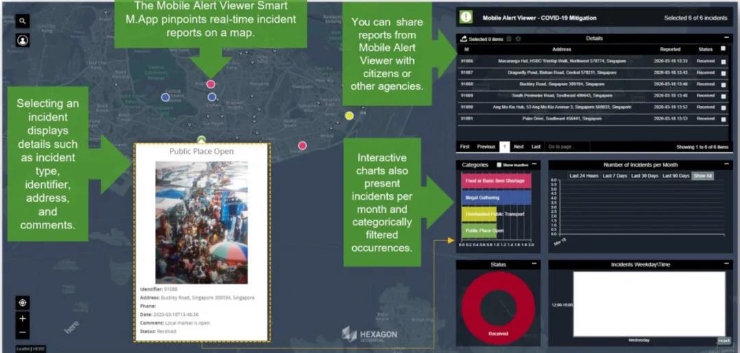 来自海克斯康地理空间部门的移动报警(MobileAlert)基于云端提供服务,可向用户(如地方政府或公共机构)提供民众的位置信息。民众们可以在iOS和Android设备上免费下载和使用“移动警报”,将疫情信息及时发送给当局。