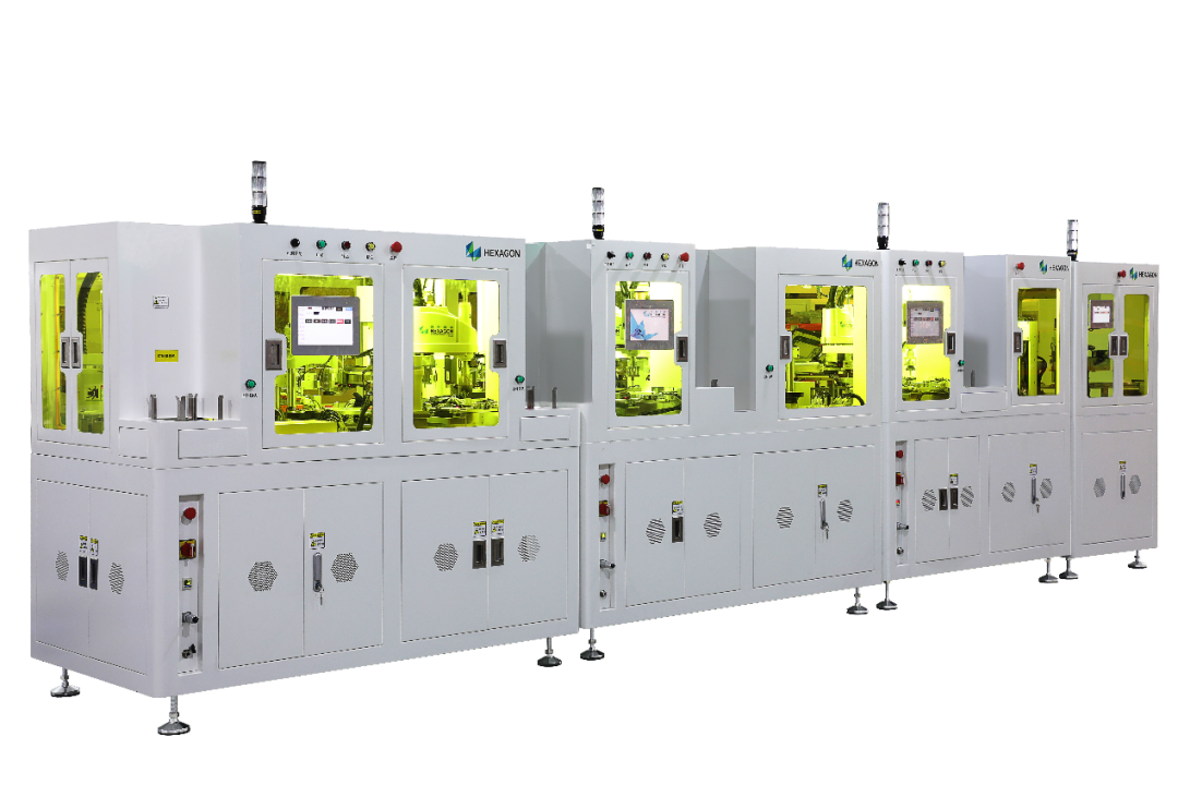 · 完成中腔组装后,经过三个工位的PIN针焊锡并进行高精度温度控制,完成后通过下料机械手下料至输送皮带线。