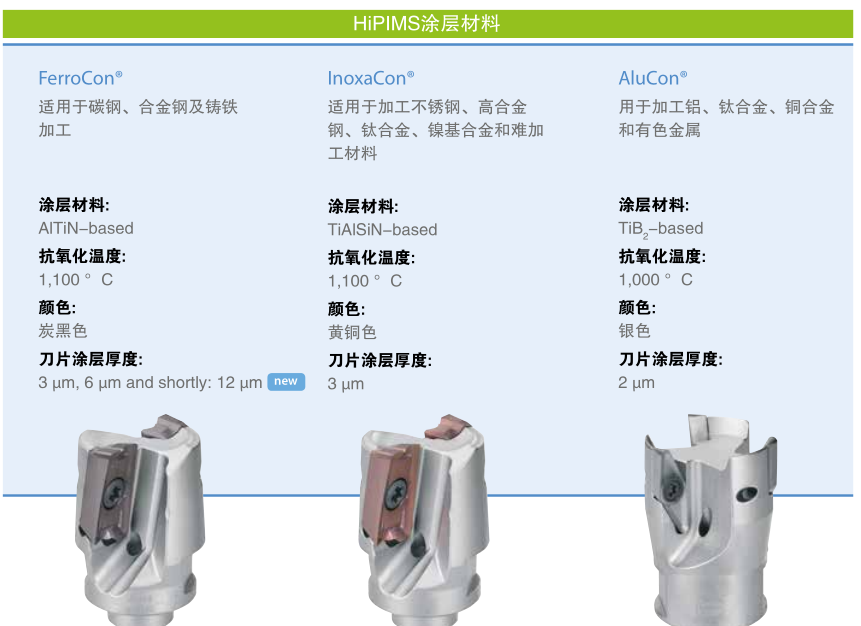 粗加工时最大的切削量,精加工时最高的精度以及最高的速度—HiPIMS为切削刀片带来令人侧目的生产优势。具有极度光滑、低应力涂层表面的FerroCon®、InoxaCon®和AluCon®涂层-高涂层厚度、高硬度、高耐磨性以及极强的附着力-满足了切削刀片对涂层的所有期望。HiPIMS涂层在极大延长切削刀片使用寿命的同时,还确保了最佳的表面加工质量和最优的切削数据。