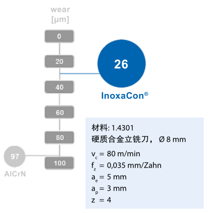 不锈钢的重要特性在于对腐蚀和酸的高度耐受性。它们非常坚韧且兼具低导热性。“这两种性能的组合对机加工非常不利,会导致钻削、铣削和车削时,切削刃会产生高氧化,从而损坏刀具,”CemeCon的PVD工艺开发部Stephan Bolz博士说, “由于InoxaCon®高达1,100°C的高温稳定性,可在加工过程中最大程度地保护刀具免受热量影响,并将其迅速传递到切屑中”。