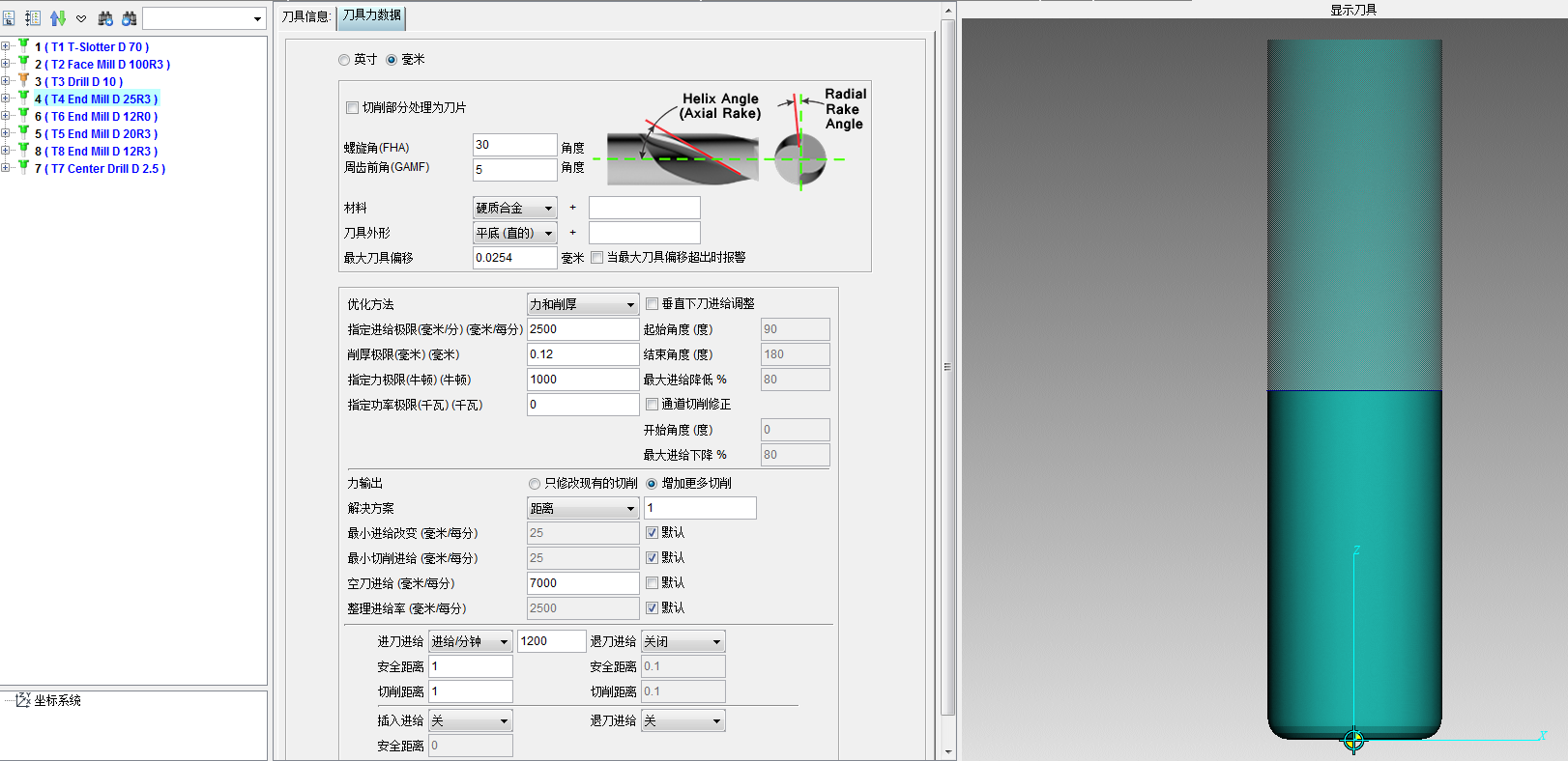 Force功能以设定的最大力值和切屑厚度为目标,通过分析刀具和材料的接触面积,考虑摩擦和温度的影响,以最大切削力极限、最大进给速度和最大切削厚度为约束,采用单目标或多目标优化算法,计算最大的可靠进给速度,并插入到NC程序中来改善程序质量。