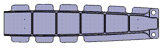 加强肋是航空零件中比较典型的零件,其主要作用起到加强和支撑的作用。加强肋具有典型的框架类特征,这类零件在编程时并不复杂,仅靠 CAITA编程很难进行优化、提升加工效率。利用Vericut软件对零件数控程序进行仿真,并设定提高生产效率为目标,通过最大切削力、最大进给、最大切削厚度及空刀进给速率等约束条件,优化进给参数,最终减少切削时间,提高生产效率。通过VERICUT对数控程序行仿真优化,设定恰当的约束条件和目标值是关键点。VERICUT仿真时需使用与编程时相同的刀具、加工坐标系,来保证仿真时的数控程序真实有效可加工。
