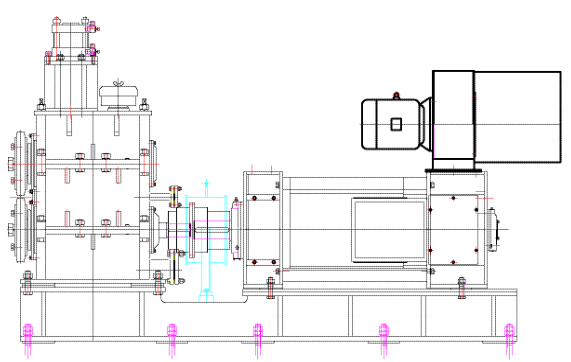 夹送(制动)装置(图2)由上、下两辊组成。夹送装置辊片安装在一对悬臂轴上,可方便地拆卸更换磨损的旧辊片。由一台直流电机通过齿轮分配箱及万向联轴器带动上、下辊转动。制动装置辊子的夹紧/打开由一气缸通过连杆机构完成,上、下辊同步动作,保证中心线固定。