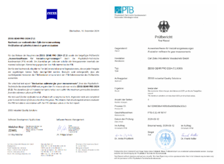 2024年,ZEISS GEAR PRO 7.2 版本软件荣获德国联邦物理技术研究院(PTB)颁发的权威认证,根据《Evaluation software for gear measurements》报告,软件参数偏差严格收敛于PTB参考值允许范围。而早在二十多年前的 2004 年,首版 ZEISS GEAR PRO 2.4 便已率先通过 PTB 认证(报告 PTB-53.3-04.05),所有参数偏差≤±0.1μm,奠定齿轮测量领域计量级精度标杆。