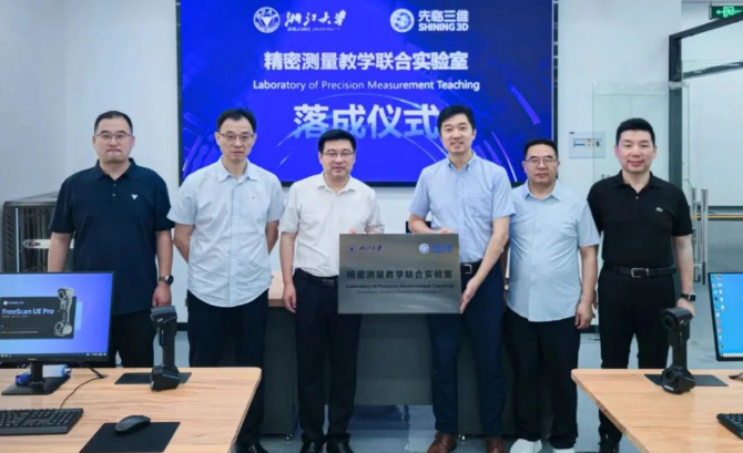 活动同期,浙江大学与先临三维共建的精密测量教学联合实验室正式揭牌。 浙江大学工程训练中心主任傅建中教授与先临三维工业3D扫描事业部总经理杨扬共同为实验室揭幕。