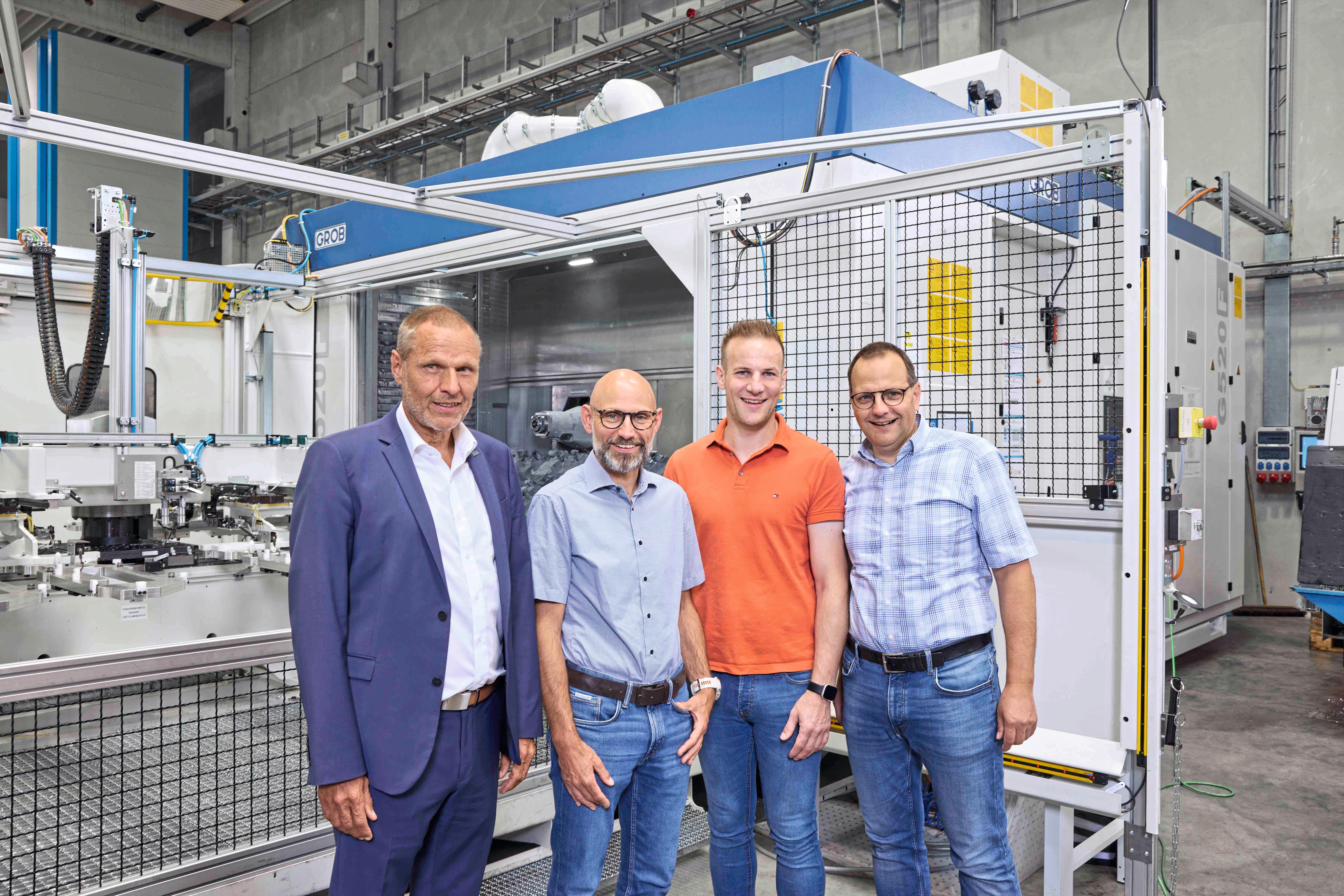 图3 从左至右:弗兰克·乌尔韦尔(格劳博官方代理商NRW生产技术公司销售总监)、安德烈亚斯·克伦策(威斯特法伦压铸公司销售主管/授权签字人)、大卫·哈勒科(威斯特法伦压铸公司CNC工艺师)、马丁·西蒙(威斯特法伦压铸公司生产经理)