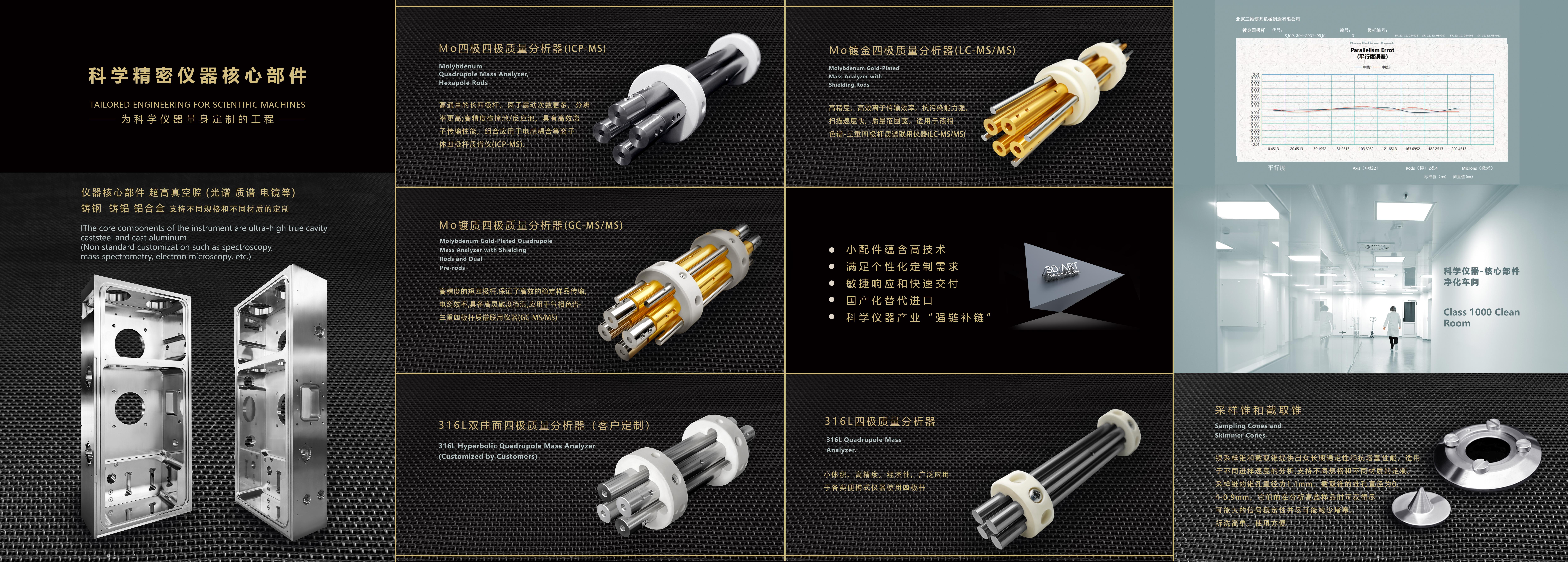 据缪总回忆,三维精密与科学仪器的渊源,可追溯至二十年前。大约在2005年,公司开始为国内光谱仪企业配套生产真空腔体。光谱仪主要用于分析金属成分与元素组成,而近年来兴起的质谱仪,凭借更高的灵敏度与分辨率,能够更快速、精准地完成分析任务,已成为科研工作中不可或缺的分析“利器”。作为质谱仪的核心部件,四极杆的制造精度直接决定了整机性能。