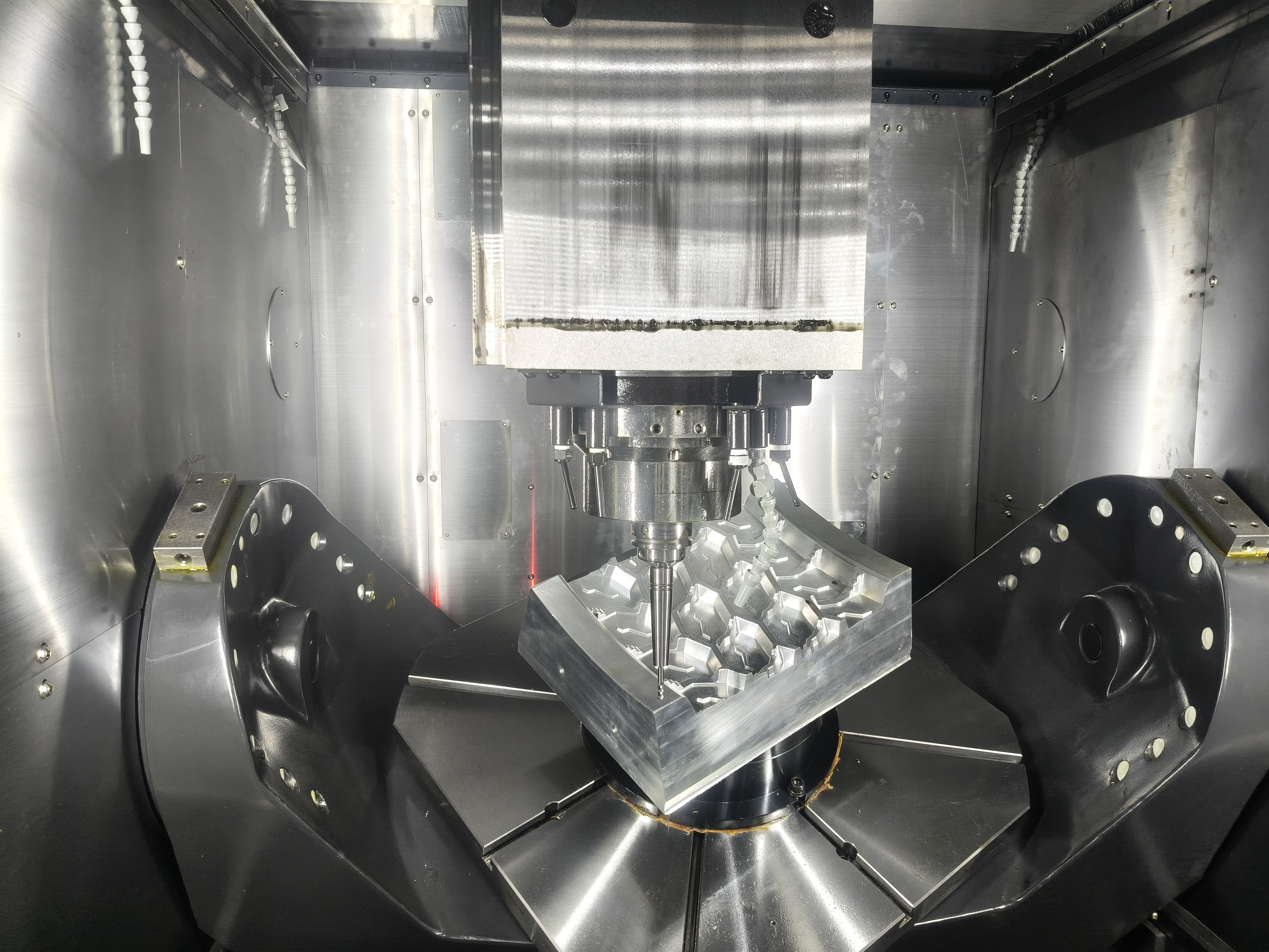 其中,立式五轴加工中心KF6500/5A搭载AWC,可灵活满足航空航天、半导体及国防工业等领域对复杂零件加工的高标准需求。该设备全轴采用高速滚柱直线导轨,在实现高速运动的同时确保高刚性; 并配备高速内置式主轴,从硬件层面保障模具零件的极致加工精度。KF6500/5A成为巍亚数控机床开拓超精密加工市场的核心利器,助力客户在复杂零部件与模具加工中实现精度与效率的双重突破。