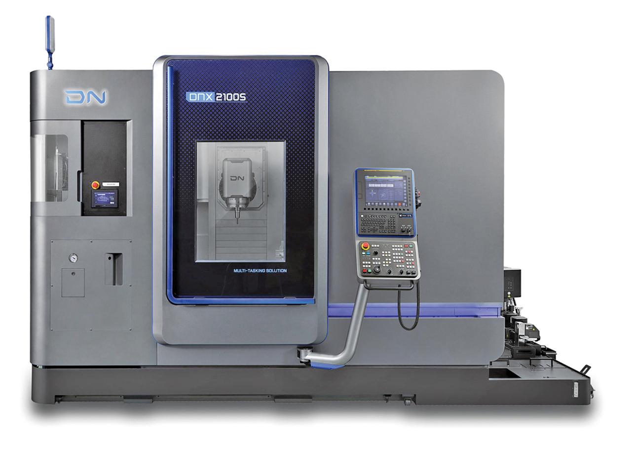 DNX 2100S是一款配备8/10 Inch(1 In≈25.4 mm)卡盘的多轴车削中心,定位为多任务加工机床,能够通过一次装夹完成复杂工序的加工,从而显著提高生产效率和稳定性。该机型取消了使用传统车削中心和铣削机床时需要转移工件的步骤,使加工过程更加简化且稳定。其主要特点包括:扩展的X、Y轴加工区域(X轴760 mm,Y轴230 mm)、紧凑型铣削主轴(最大主轴转速12 000 r/min,加工长度1150 mm)、灵活自动化和易于维护的新设计理念,以及支持发那科或西门子等多种控制系统的选项以提升操作便利性。此外,DNX系列在外观设计上进行了革新,采用柔和曲线轮廓和暗金属灰(银)基色,展现出未来导向的产品价值,其中DNX 2100S更凭借其设计荣获世界三大设计奖之一的“红点设计大奖”产品设计奖。该机型的主要参数如下:主轴转速12 000 r/min,主轴电机功率18.5/15 kW,快移速度(X/Y/Z轴)均为36 m/min,最大加工直径/长度为520/1100 mm,机床尺寸为5050 mm×2803 mm ×2630 mm。