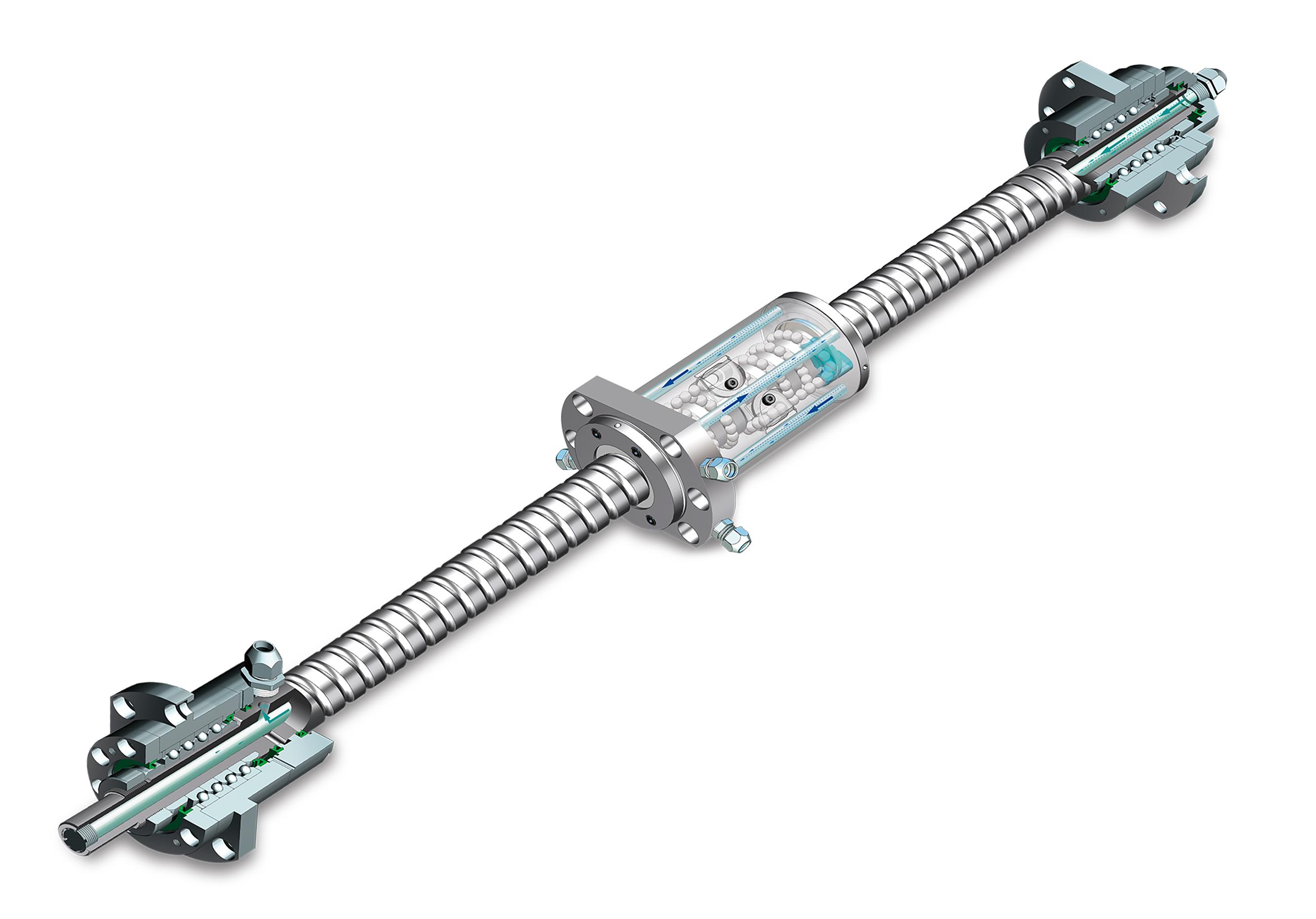 数控机床对核心传动部件滚珠丝杠的定位精度和稳定性要求极高,尤其高档数控机床在连续高速运行下,要求滚珠丝杠副不能有任何热变形。南京工艺通过近些年的潜心研发突破,推出一款中空强冷型超精密滚珠丝杠副。搭载创新性内冷设计,丝杠、螺母冷却通道均可实现高速运转时的高效散热,有效降低丝杠副因高速运转产生的热量,配合螺母变位预紧技术,在60 m/min高速运转时仍保持μm级精度稳定性,使得数控机床在高负荷、高速加工时仍保持优秀的动态性能和加工质量。创新型工艺实现中空强冷超精密滚珠丝杠副短交期供货。产品规格为:公称直径φ32~φ80,导程10~40,主要应用领域包括五轴加工中心、卧式加工中心、龙门加工中心以及高速车铣复合中心等。