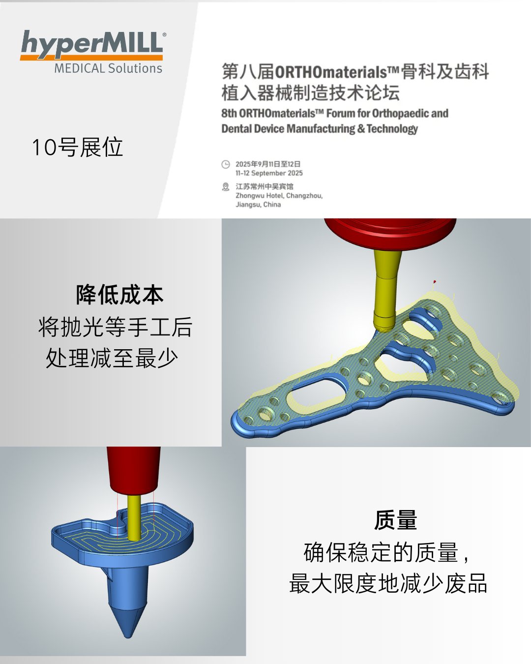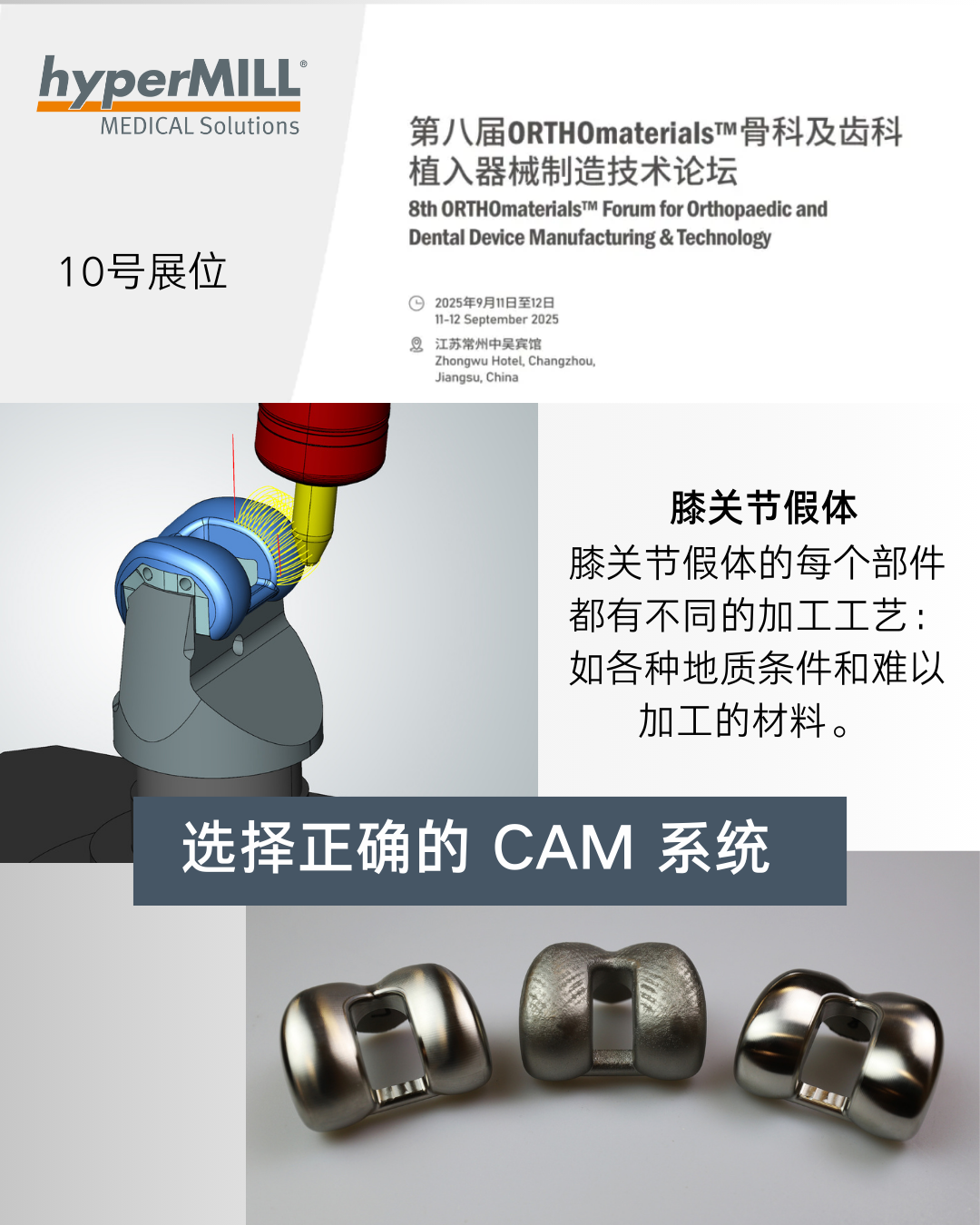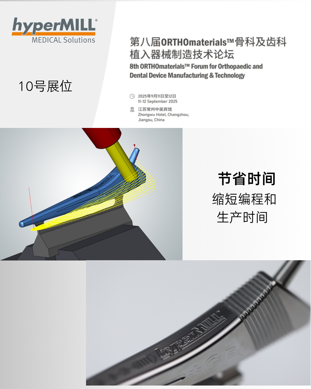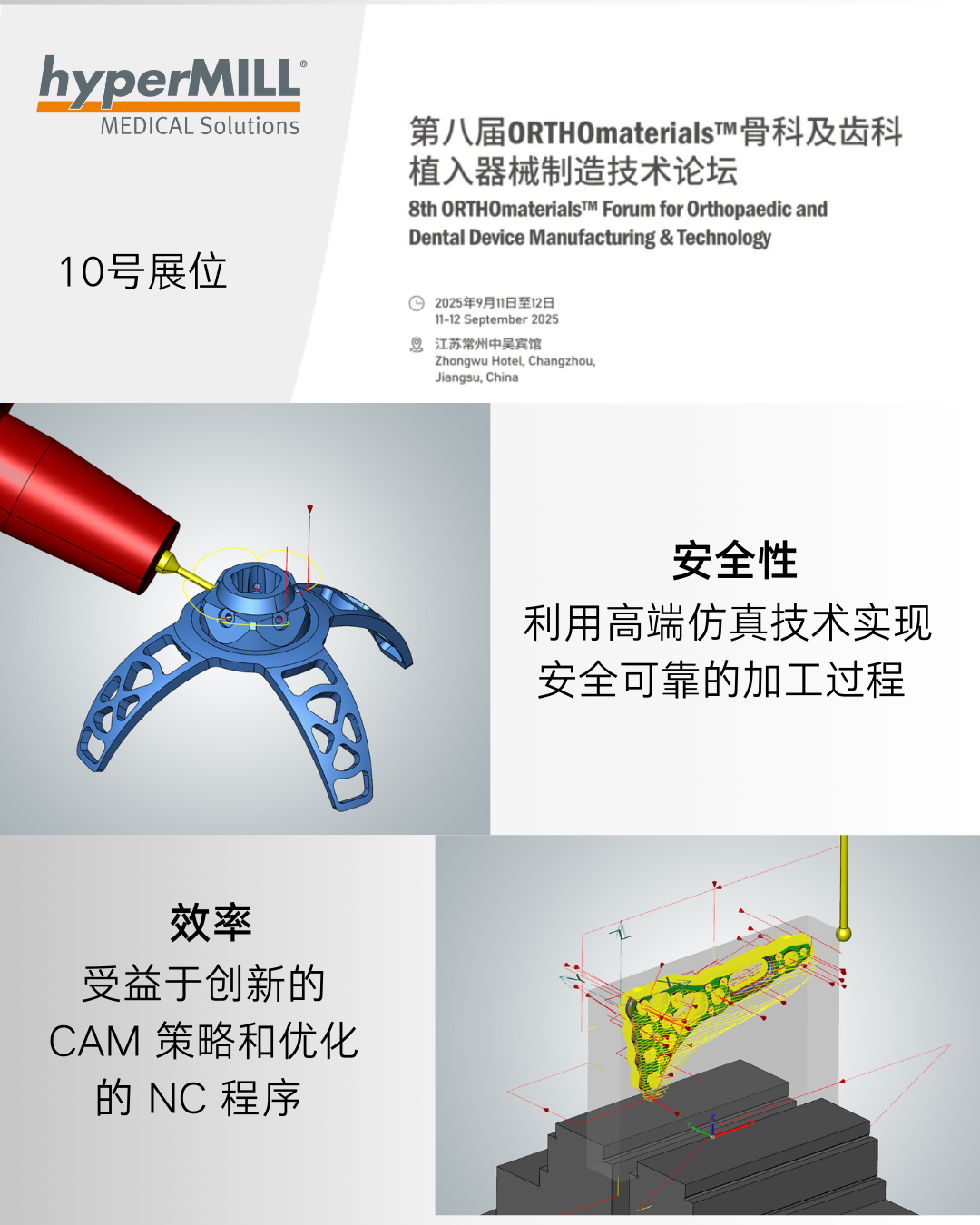 聚集了全球知名的医疗器械制造商和供应商,他们成功使用hyperMILL CAM软件并收获卓越成效,同时他们始终能依托我们成熟的制造技术实力。我们在活动现场的10号展位,诚邀您莅临参观我们的展位,把握这一交流良机。