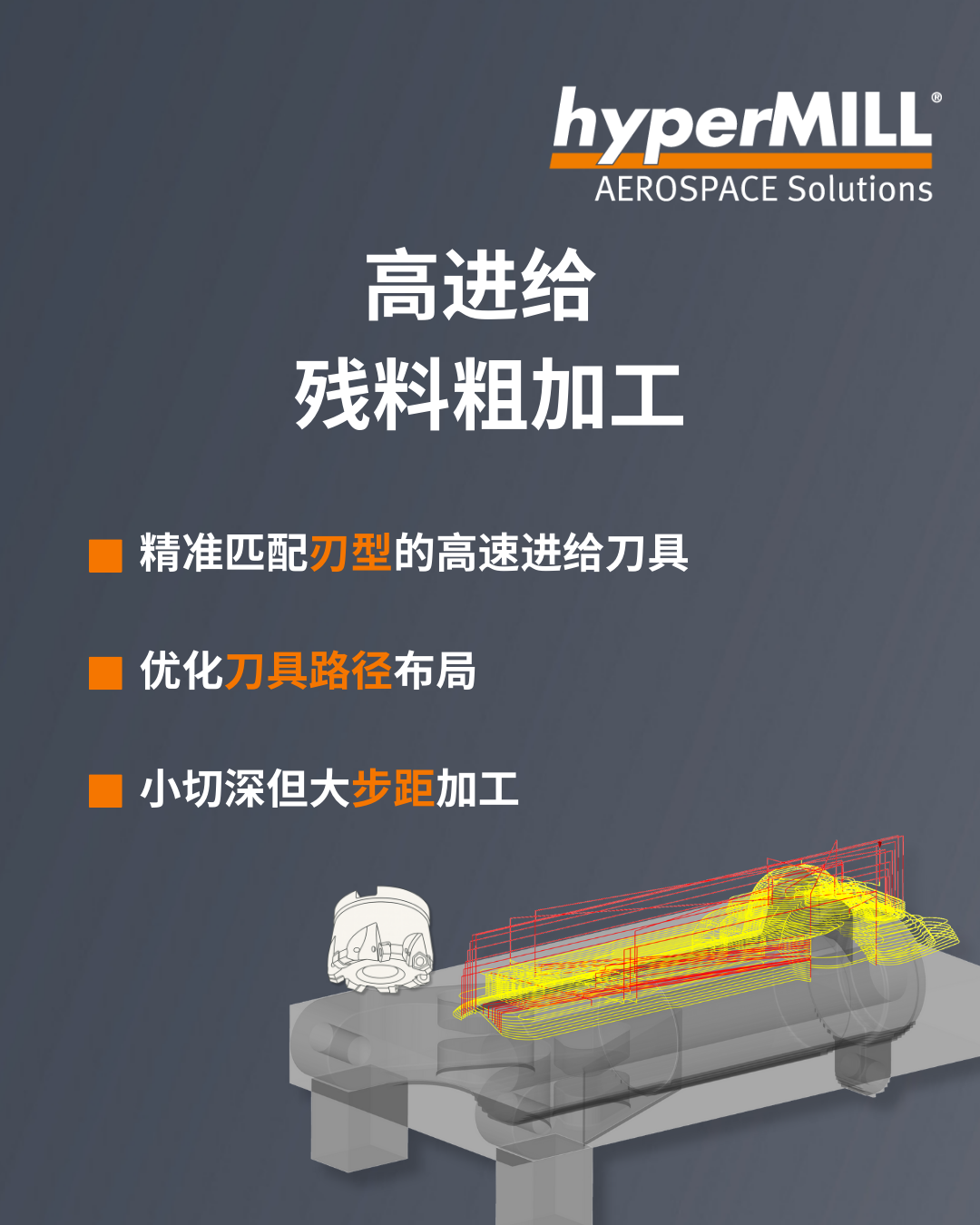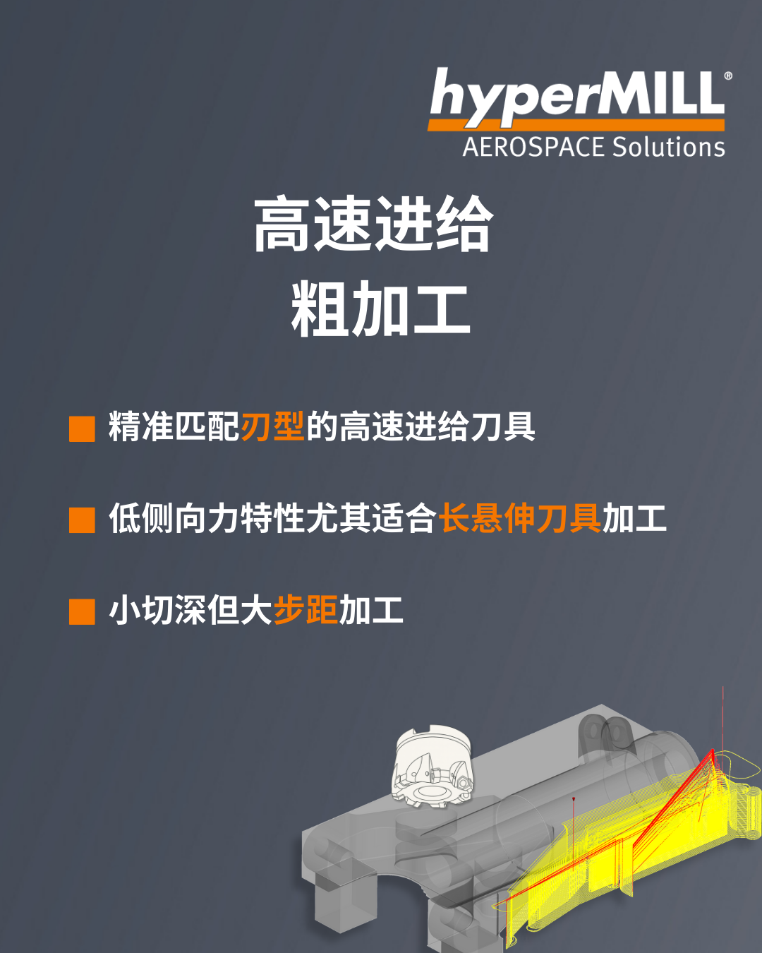 以某起落架部件为例,该工艺流程展示了 hyperMILL 如何将多种粗加工策略与刀具配置及航空航天领域的特殊需求相结合。其核心在于实现受控的切削状态、高效材料去除率,以及在复杂几何形状上保持稳定的加工过程。这清晰表明,粗加工策略的抉择直接影响严苛航空航天工艺流程的稳定性与整体性能。