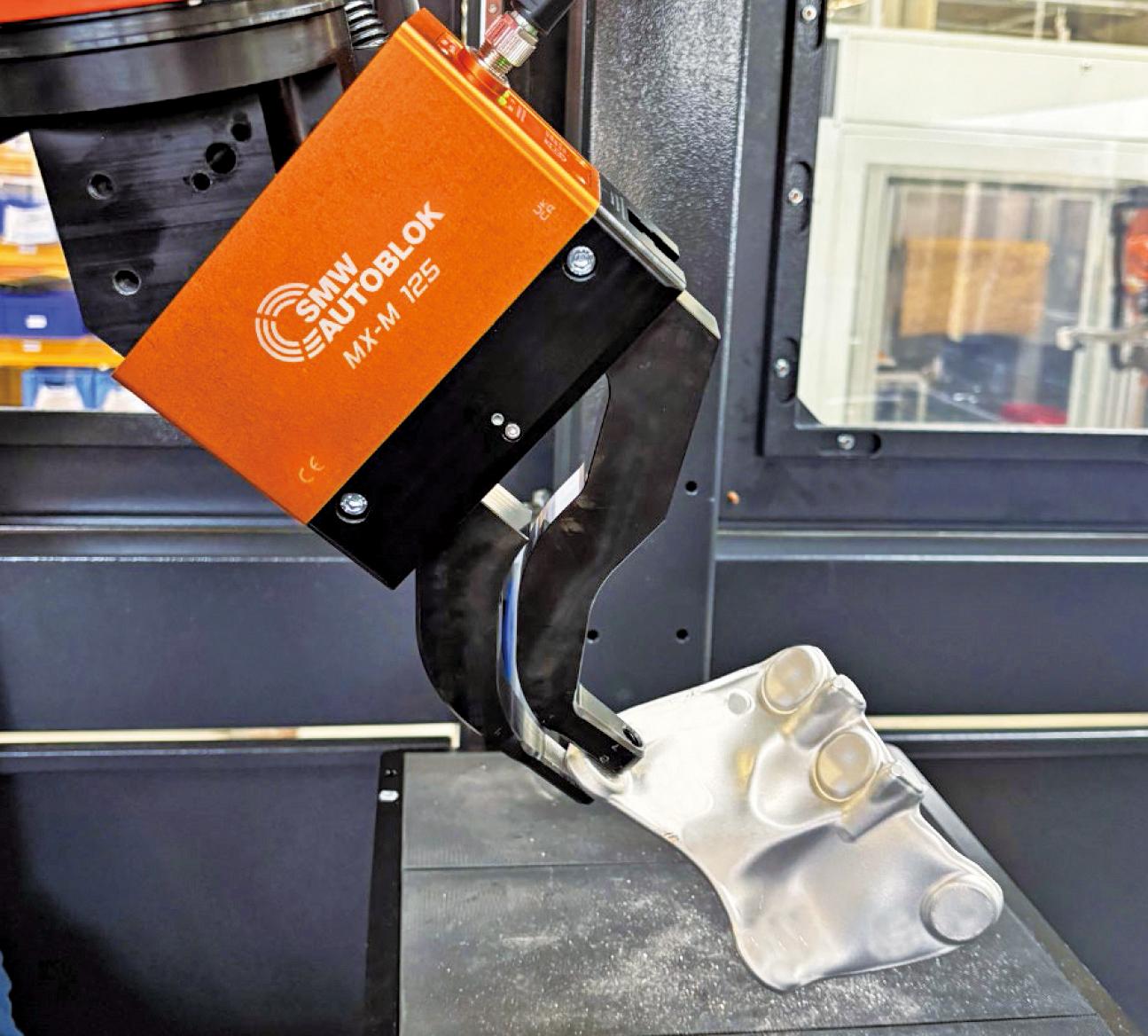 在汽车产业向电动化、轻量化转型的关键阶段,零部件制造的效率与精度成为企业核心竞争力。MX-M 125 IOL智能电动平行机械手专为汽车行业拾取场景打造,在电动汽车铝制底盘悬架部件生产中实现了规模化落地应用。该产品可以提供大夹持力,但却有着紧凑的体积,有效避免机械干涉,搭载灵活的IO Link接口,可实现抓取位置的精准调节与实时监控,配合3D视觉系统与工业机械臂形成一体化自动化解决方案,完美适配铝铸件随机存放的箱式拾取需求。在实际生产流程中,单重约250 g的铝制底盘悬架铸件被随机存放于网箱中,集成在自动化控制系统的3D相机对物料进行快速扫描,控制系统精准解析零件位置后向机器人发送拾取指令,MX-M 125 IOL凭借紧凑密封的结构设计与强劲的抓取力,完成零件的精准定位与可靠抓取,并将其准确放置于指定工件载具中。其密封设计可适应汽车制造车间的复杂工况,有效防止粉尘、油污对设备的影响,保障24小时不间断作业的稳定性,大幅提升了汽车零部件箱式拾取环节的自动化水平与生产效率,助力车企实现柔性化生产布局。