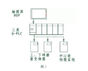 上、下研磨盘的旋转均采用德国SEW减速电机,由三菱FR-E540-5.5kW变频器驱动。中心轮的旋转由三菱 MR-J 3S- 200A控制中惯量伺服电机HF-SP- 202与SEW减速机联接,为工件的旋转提供了驱动。为了随时调定所需的转速,采用电位器无级调速,转速由数显表显示。三个驱动电机的无级调速为研磨各种材料和各种形状工件提供了所需的工艺转速。