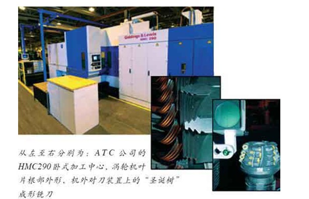 ATC公司从Giddings&Lewis公司采购了一台HMC290设备,用于加工涡轮机叶片根部。以前需要2名操作工操纵3台设备,如今只需1名操作工操纵这1台设备就可完成全部加工过程在HMC290设备上完成一套作业,不用磨削加工就能达到过去只有通过磨削工艺才能达到的精度。