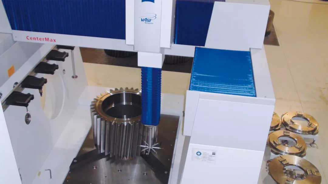 重型齿轮接着会被放置在 CenterMax 上的一个特殊的夹具里。测量会自动开始,测量结果将通过与工位的通信被传送到数据库。每个经过CenterMax检测的零件会被事先送到一个更大的自动化仓库,在那里它们将会等待被整合进齿轮箱内。总的来说,这套系统是标准化自动化系统的完美例子。由于预期会有额外的需求,这个区域已经做好了系统扩张的准备。使用 GEAR PRO进行齿轮评估,是提高质量的关键,并且其能确保稳定的生产。同时还能获取统计数据,用以简化将来的加工流程。随着大批量生产和测量过渡的完成,Moventas 充分准备好了面对未来的挑战。