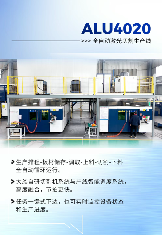 此后两年,该客户又陆续引进大族激光PX12050T重载型激光切管机、HBS1631高性能数控伺服折弯机、HBE0620纯电折弯机以及ALU4020全自动激光切割生产线,逐步构建起覆盖平面切割、折弯成型、管材加工的全流程智能化解决方案,实现从平面板材到管材的高效精密加工。