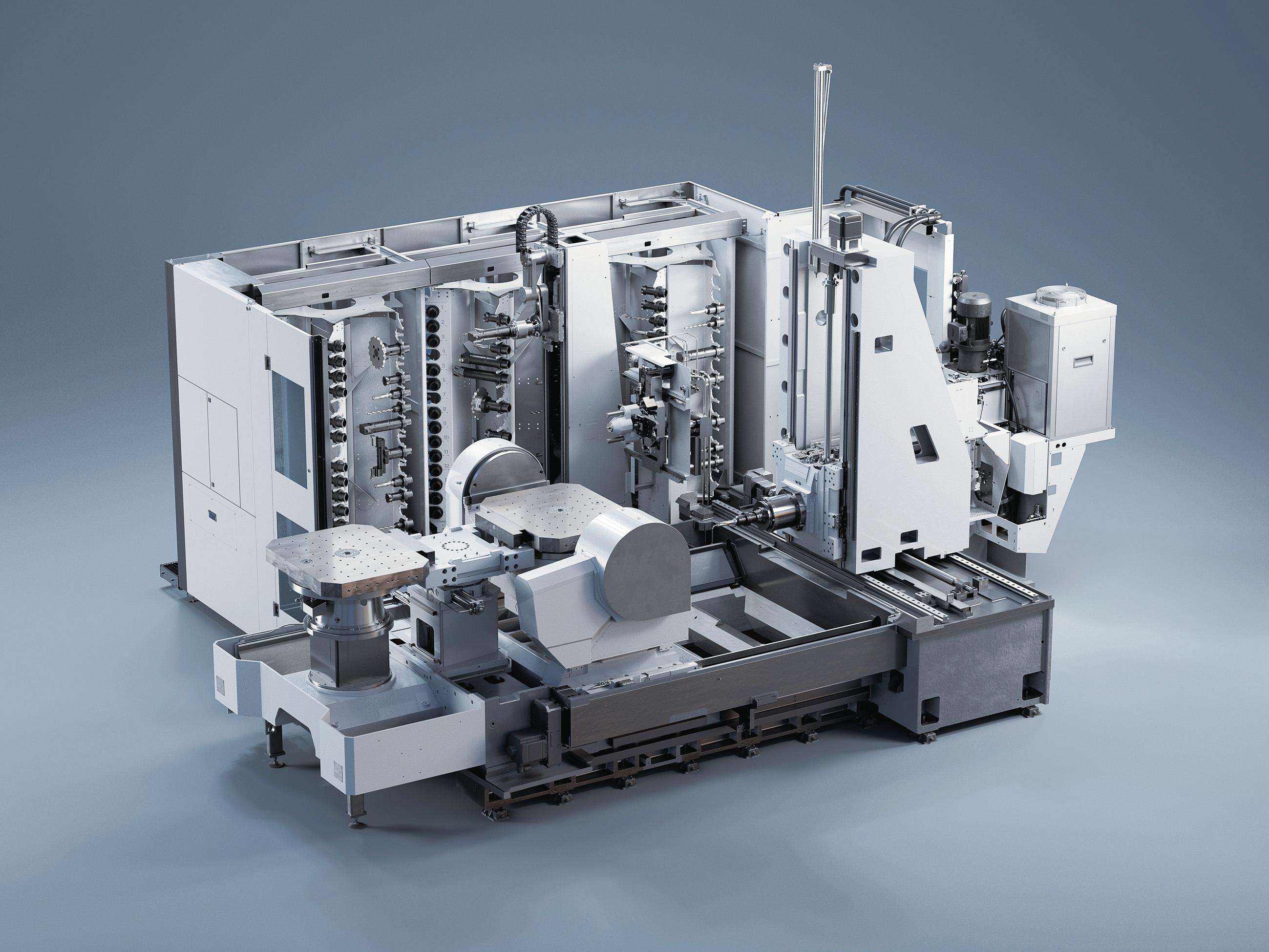 车削功能作为机床核心配置可选装集成,通过专属开发的硬件组件与软件模块,可依托加工中心的高效生产力完成常规及复杂车削工序。区别于传统车床,该机型支持多元化装夹方案:工件既可垂直装夹提升操作便利性,亦可通过托盘交换装置实现加工过程中的装夹操作。刀具配置方面,全系列均可选配大型刀库,其中 X90 工作区域车削直径可达 1400 mm。