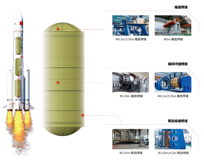 贮箱是运载火箭的“身躯”与“油箱”,其直径直接决定了火箭的运载能力。贮箱采用先进的搅拌摩擦焊焊接技术,具有焊接强度高、焊接过程环保无污染、焊接自动化程度高等突出特点。