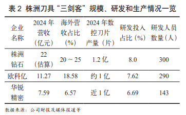 值得一提的是,在中国刀具产业版图中,株洲凭借其独特的产业集群优势,成为国产刀具崛起的重要力量。株洲拥有国内最大的硬质合金材料产业集群,聚集链上企业 300 余家,规模超 500 亿元,长期占据亚洲最大硬质合金生产基地的地位。株洲打造了 “原材料→模具→刀片→刀具→终端服务” 的全链条生态,其刀具集群规模庞大、产业链完整,代表中国企业在全球市场具备显著竞争力。株洲硬质合金产量在全国行业占比 41%,高端数控刀片占比 75% 以上,为国产刀具的发展提供了坚实的产业支撑。在株洲的刀具产业中,有三家企业尤为引人注目,被称为株洲 “刀具三剑客”,分别是株洲钻石、欧科亿和华锐精密。这三家企业各具特色,在推动国产刀具发展的道路上发挥着重要作用。特别是在我国制造业升级的推动下,代表高端的硬质合金可转位刀具应用越来越广,对数控刀片的需求迅速增长,头部国产刀具厂商积极扩产,株洲这三家刀具企业均实现了数控刀片产能上亿片的目标,其产品竞争力和服务创新能力实现跨越式提升。