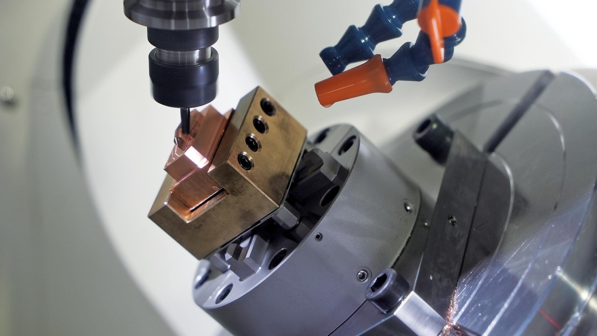 图3 北京精雕五轴机床进行现场加工演示