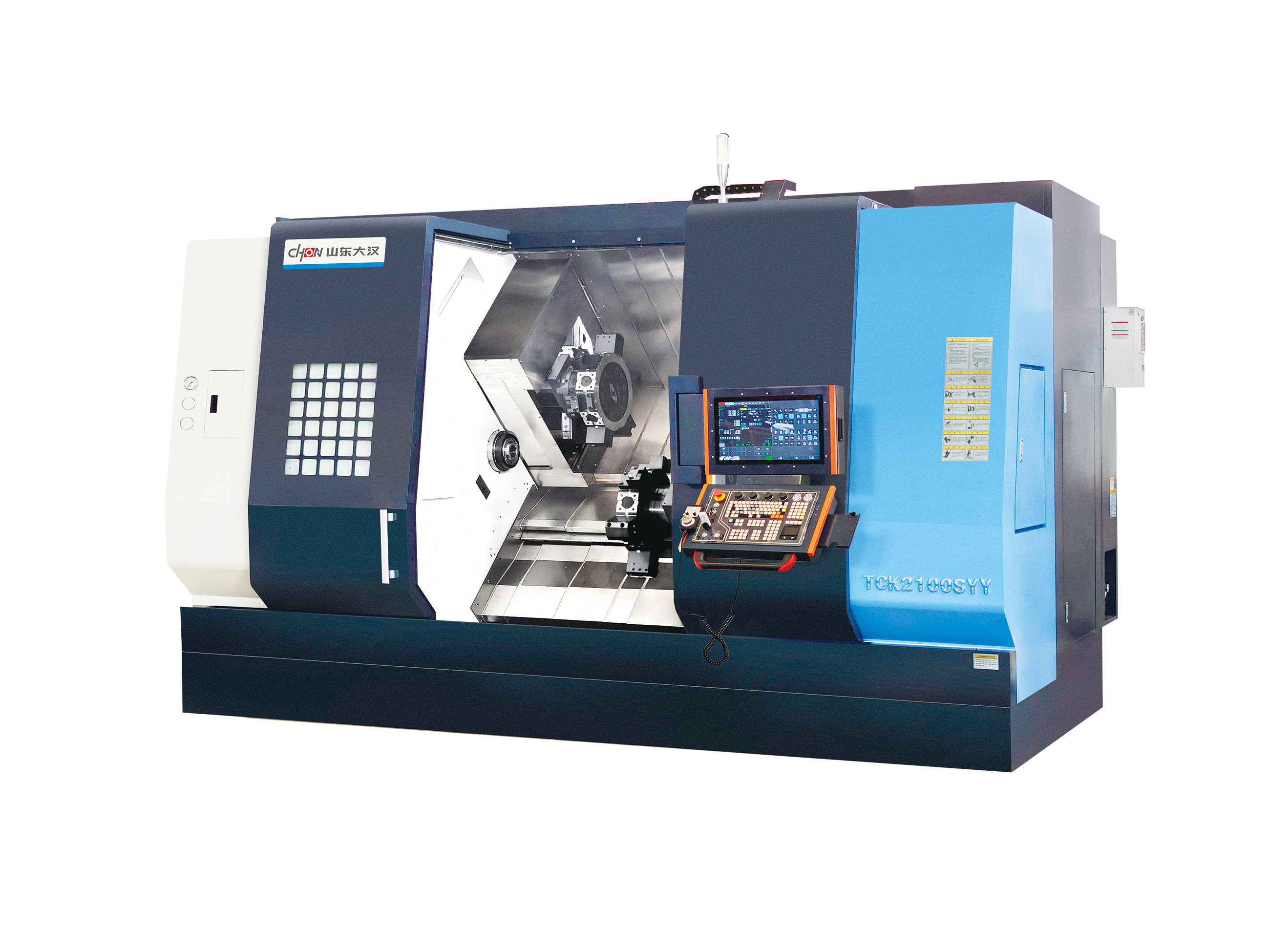 TCK2100SYY AI机床设计打破了传统机床的功能局限,通过多轴联动和智能控制,实现了车、铣与钻攻等多种工艺的复合加工。