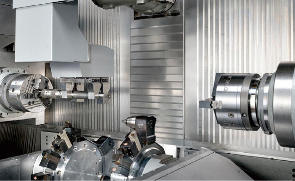 图3 INDEX G400 YB配备主轴和副主轴,底部安装10工位的刀塔以及顶部安装的带Y轴的B轴铣削主轴