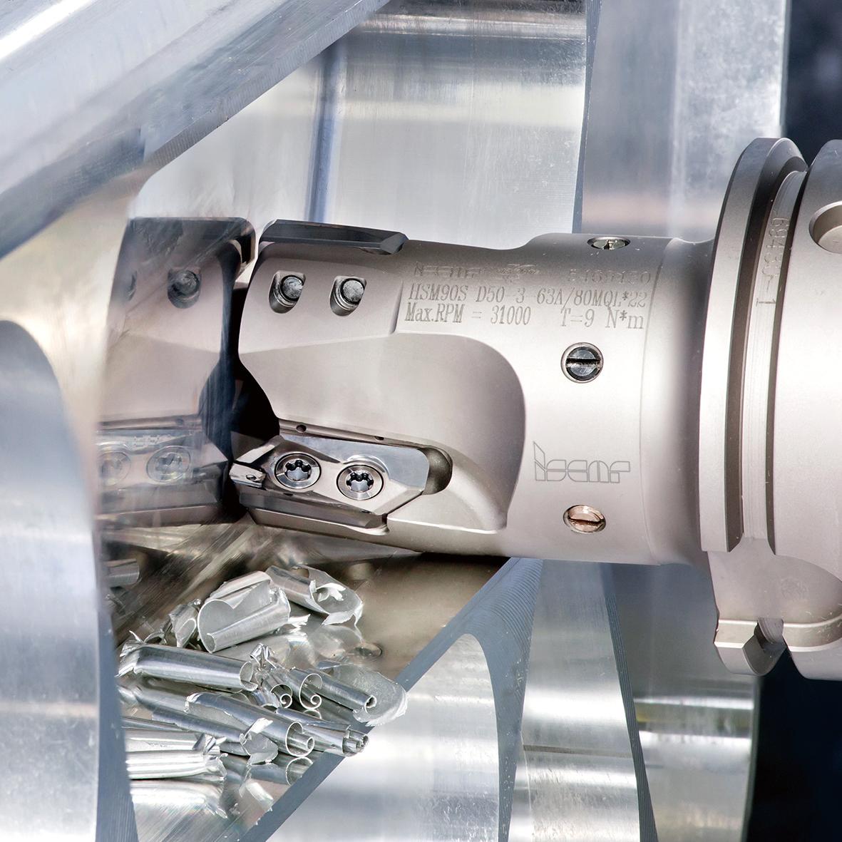 过去几年,ISCAR一直着重发展专为超高切削速度设计的铝合金可转位铣刀产品系列,旨在提高金属去除率。这些刀具的设计能防止因强离心力导致的刀片径向移动。专用的防移动锁紧机构确保了长时间高速铣削操作中的可靠切削。最新研发成果通过推出可安装大尺寸刀片的刀具,将切削深度提升至22 mm,显著增强了产品系列的加工性能。此项增补有力地支持了现代大功率机床配备高速主轴系统的效能充分发挥,如图3所示。