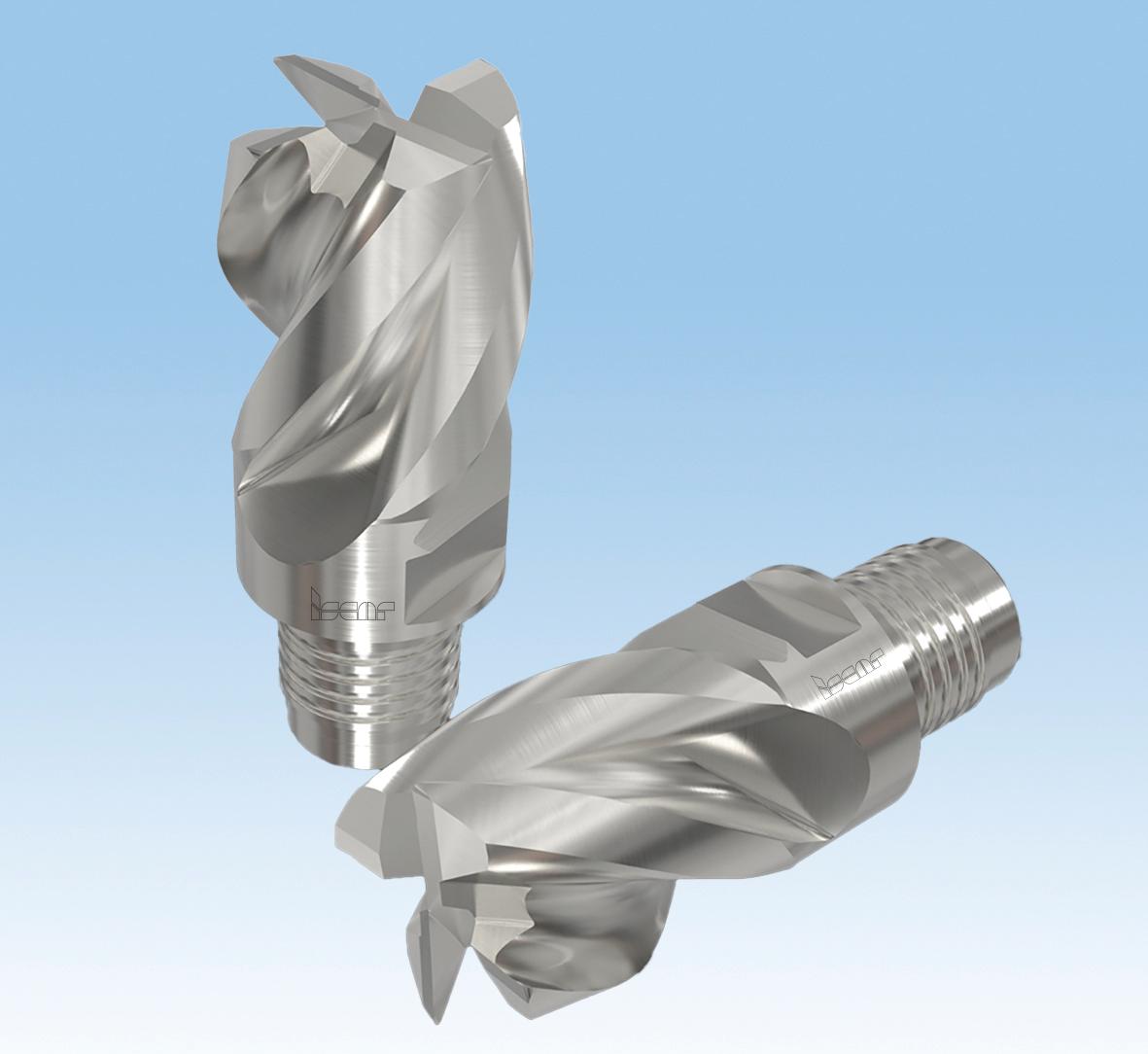 当然,整体硬质合金立铣刀及配备可换式硬质合金切削头的装配式刀具也在持续发展中。近期的创新包括几款不同廓形的整体硬质合金立铣刀和切削头。例如,一款4刃、直径32 mm的MULTI-MASTER切削头,采用了变螺旋角设计以改善动态稳定性,使其能在从粗加工到精加工的广泛操作范围内保持稳定的切削性能,如图4所示。