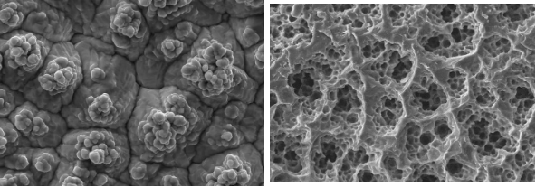 ▲铜基材与树脂基材在扫描电镜下的形貌