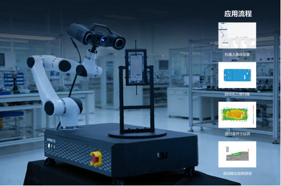 扫描效率方面,OptimScan Q12 HD内嵌高性能双芯片计算平台,实现单幅扫描时间小于1秒的极速响应。配合机械臂和转台,能够实现高节拍的三维检测,显著提升产线效率。