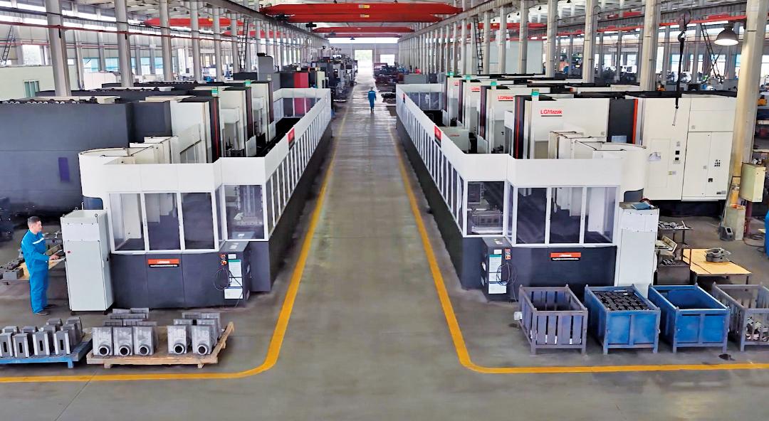 据数控车间主任陈亚平介绍,随着FMS柔性线的加入,垂直立柱等复杂箱体类零件的加工,从以往需要在多台设备间辗转装夹、反复定位,简化为一次装夹、通过B轴精密旋转完成6个面的全部加工,效率提升至普通机床的3倍以上,且位置度精度得到了根本性保障。基于第一条FMS柔性线的卓越表现,青城机械在2017年果断复购了第二条FMS柔性线。至此,两条FMS线共计配置7台加工母机、70个托盘,每台机床配备120把刀具,为青城机械构建了两个高度柔性的智能制造单元。