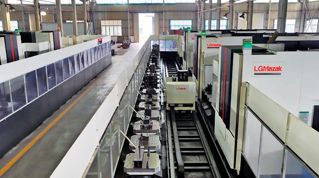 如果说单台数控机床是提升了制造的“点”的效率,那么FMS柔性线的引入,则是为青城机械的整个生产“面”带来了革命性的重塑。随着全球市场个性化、定制化需求的蓬勃兴起,青城机械面临着前所未有的挑战,正如青城机械副总经理肖顺所说:“近些年,我们的客户定制化订单已大约占到了总销量的50%。多品种、小批量的订单,对排产灵活性和交货期提出了更高要求。通过与马扎克合作,我们实现了柔性化生产,能够更好地应对市场挑战。”2016年,青城机械引进了马扎克的首条FMS柔性线。这条由多台卧式加工中心、70个智能托盘交换工作台及庞大刀库系统构成的自动化产线,为工厂注入了“智慧”与“弹性”的血液。